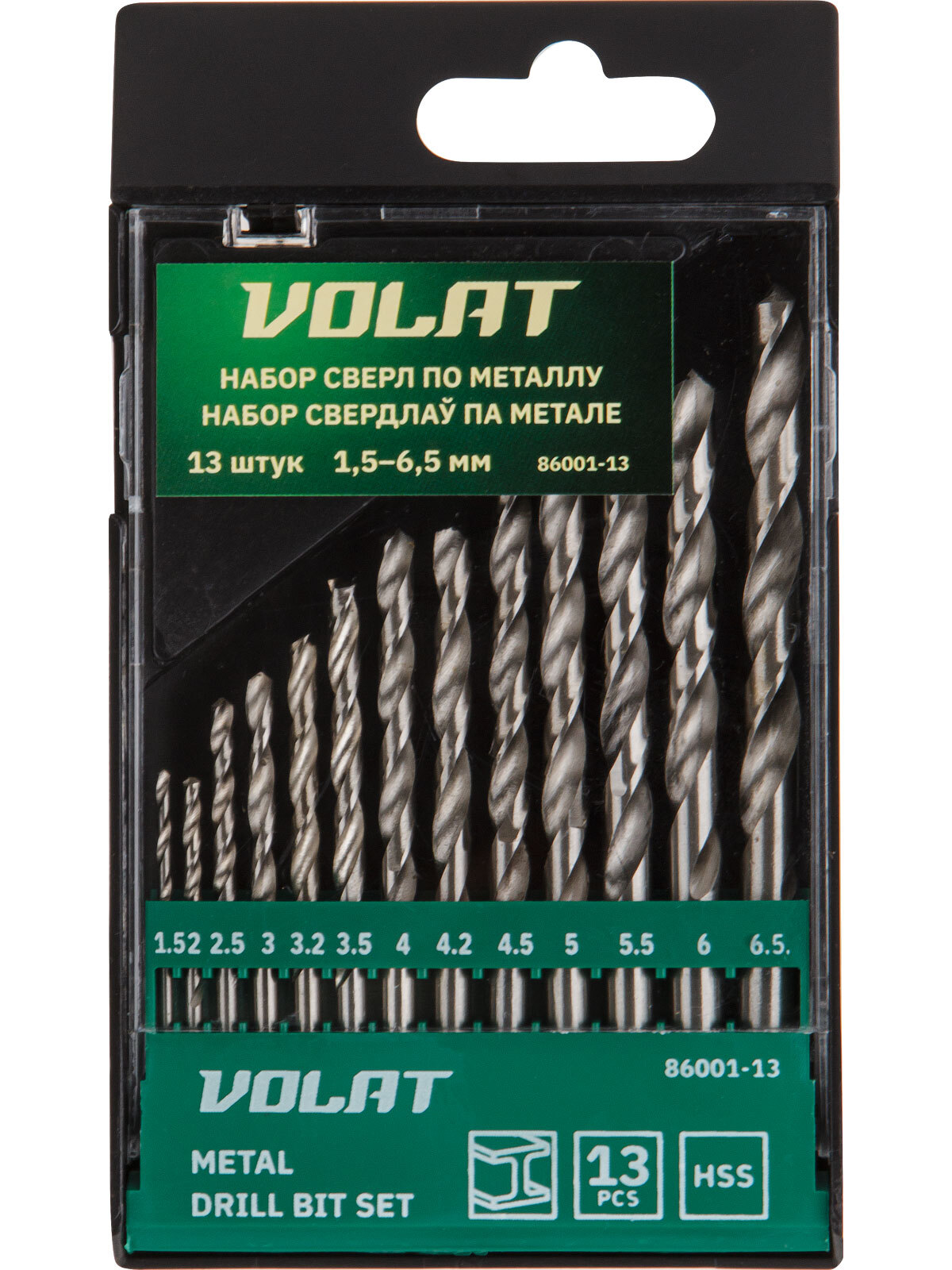 Комплектация (диаметры сверл, мм): 1.5, 2.0, 2.5, 3.0, 3.2, 3.5, 4.0, 4.2, 4.5, 5.0, 5.5, 6.0, 6.5,